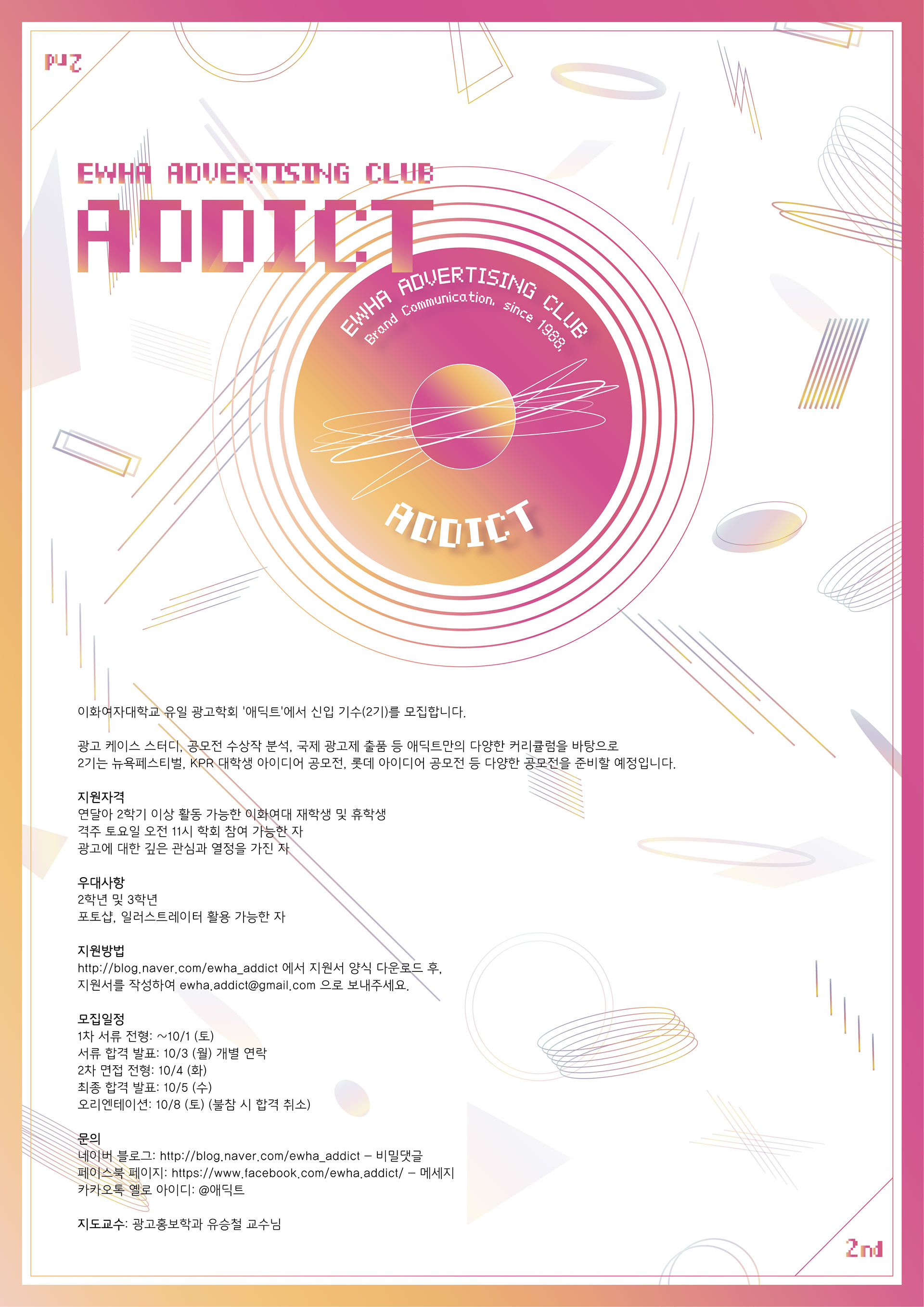 애딕트는 이화여자대학교 유일 교내 광고학회로 00년대 초 명맥이 끊겼으나