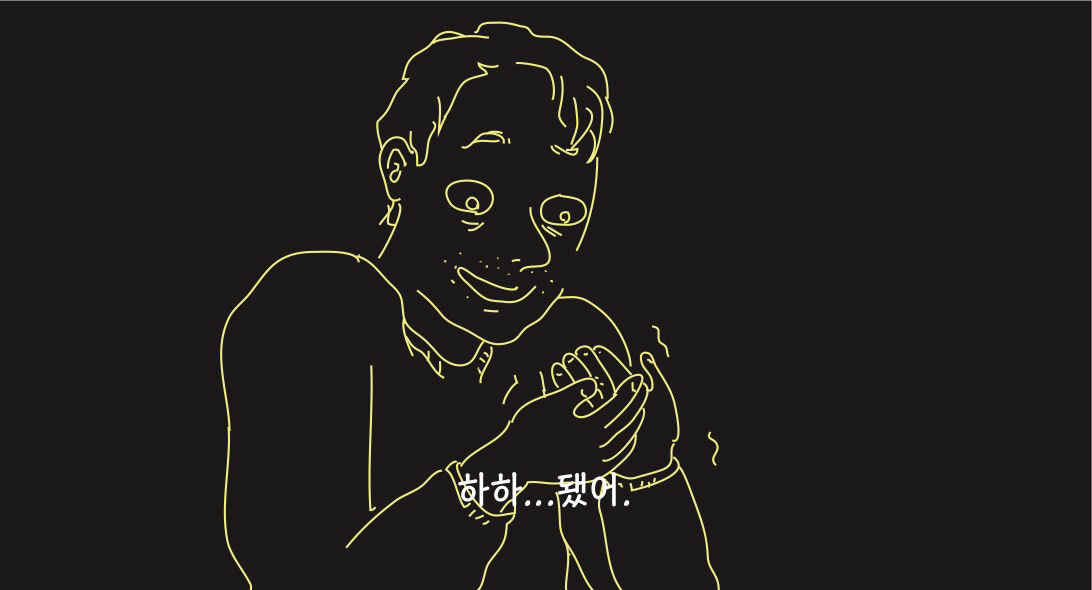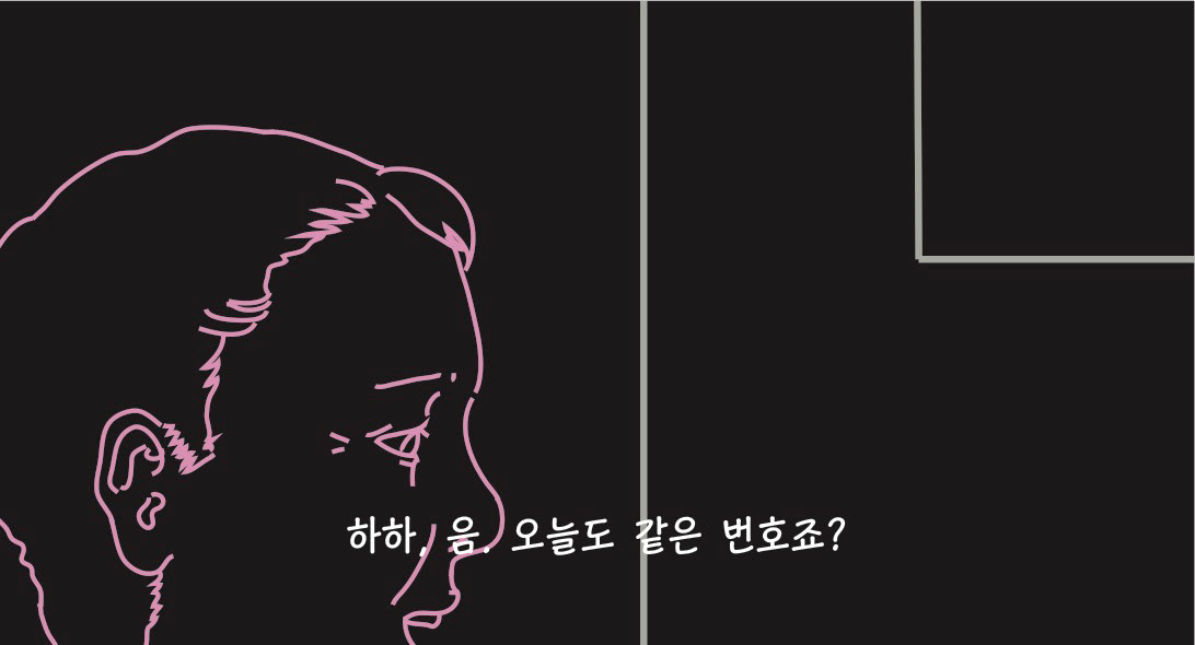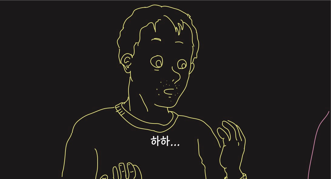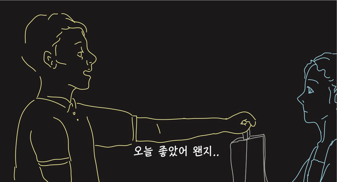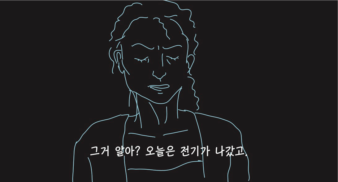 우울하고 퇴폐적인 분위기를 암시하기 위해 네온사인 같은 드로잉으로 작업해보았습니다.