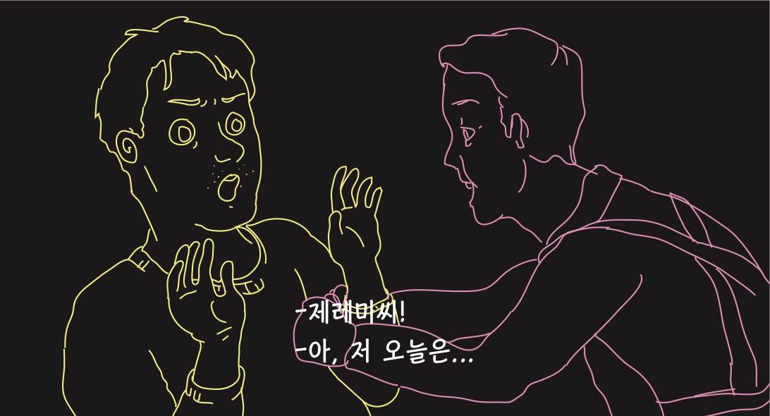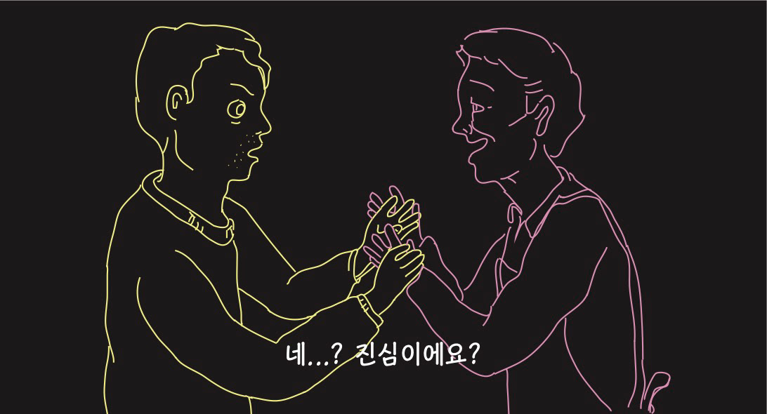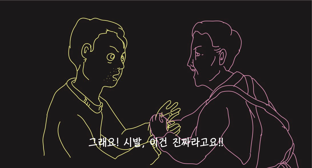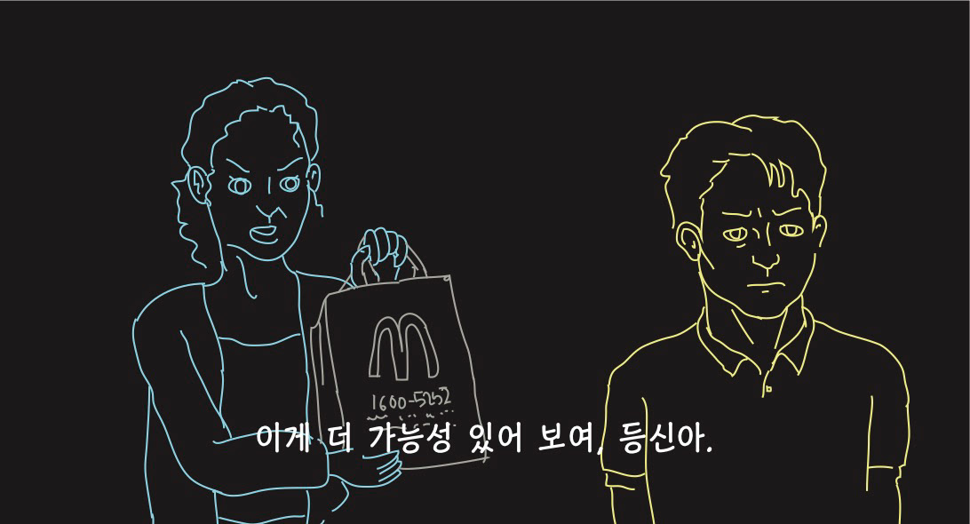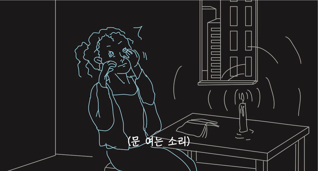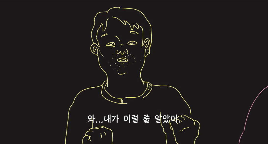 우울하고 퇴폐적인 분위기를 암시하기 위해 네온사인 같은 드로잉으로 작업해보았습니다.